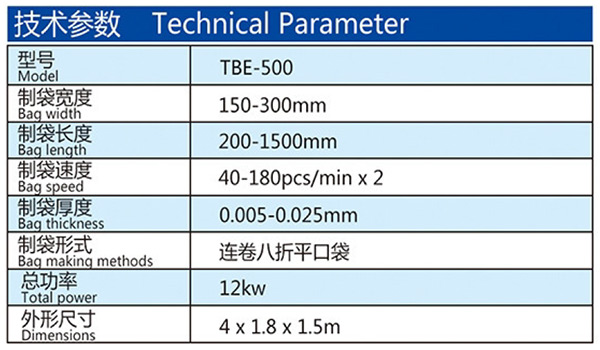 機(jī)器特性 此設(shè)備為生產(chǎn)連卷八折平口垃圾袋的專用設(shè)備,雙通道高速無拉伸,底封好,收卷整齊,個數(shù)準(zhǔn)確,手動手卷。主動放料,薄膜張力穩(wěn)定。 此設(shè)備采用全鋼板一體而成,用電220v照明電即可。 &nbs